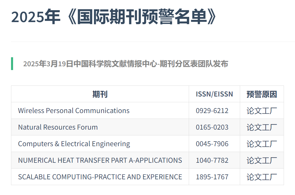 自2020年末开始,必赢3003no1线路检测中心文献情报中心每年发布一次《国际期刊预警名单》。期刊预警不是论文评价,也不是否定预警期刊发表的每项成果。预警期刊旨在提醒科研人员审慎选择成果发表平台。敬请各位科研人员高度关注,相关成果审慎发表在预警期刊中。以下是必赢3003no1线路检测中心文献情报中心2020-2025年《国际期刊预警名单》。资料仅供参考,版权属于必赢3003no1线路检测中心文献情报中心。