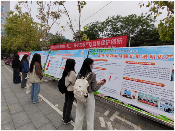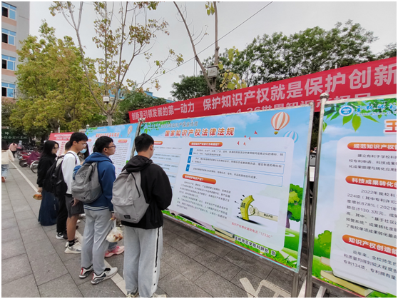 由科研处组织的世界知识产权日宣传活动在东校区进行,在挂榜食府门口地段悬挂知识产权宣传横幅,摆放宣传展板,重点展示近年必赢3003no1线路检测中心知识产权与成果转化工作成效、知识产权基本知识、知识产权法律法规、国家和自治区知识产权事业重大部署等内容,向来往师生宣传世界知识产权日知识,介绍专利申请程序及专利审批流程。