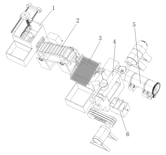 一种餐厨垃圾处理装置,提供一种可以分离塑料袋的餐厨垃圾处理装置,包括依次衔接的装料箱、输送带、过滤机构、挤压机构、烘干机构,挤压机构的下方设有油水分离机构;装料箱内设有竖直布置的转动架、连接所述转动架的安装座、驱动所述转动架旋转的第一电机,所述转动架的外围设有多个水平布置的搅拌杆,所述装料箱的顶部设有驱动所述安装座上下运动及水平运动的第一驱动机构,所述装料箱的一侧设有第一收集箱。